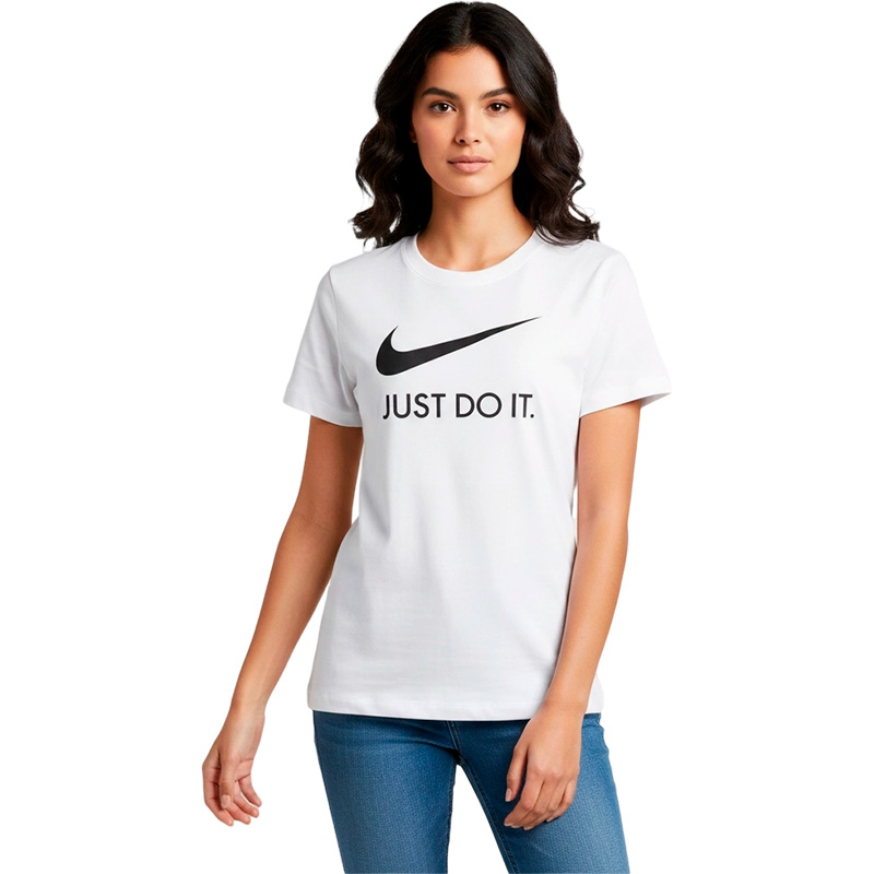 Универсальная футболка на каждый день Nike Sportwear JDI для девушек с активным образом жизни. Современные материалы дарят комфорт и ощущение легкости в течение всего дня. Фирменный дизайн футболки легко узнаваем и остается актуальным каждый сезон. Белый цвет в сочетании с графикой «Just Do It» создает Ваш собственный спортивный стиль. Футболка подойдет как для занятий спортом, так и повседневного использования. Материал джерси на основе хлопка приятно прилегает к телу и обладает высокой износостойкостью. Ткань не требует частого ухода, не растягивается и не скатывается со временем. Круглый вырез и плоские швы не доставляют дискомфорта во время движений и не раздражают кожу. Стандартный крой позволяет активно двигаться без дискомфорта. Оптимальная длина футболки и рукавов не дает ей задираться при движениях руками или наклонах.Особенности и преимущества: